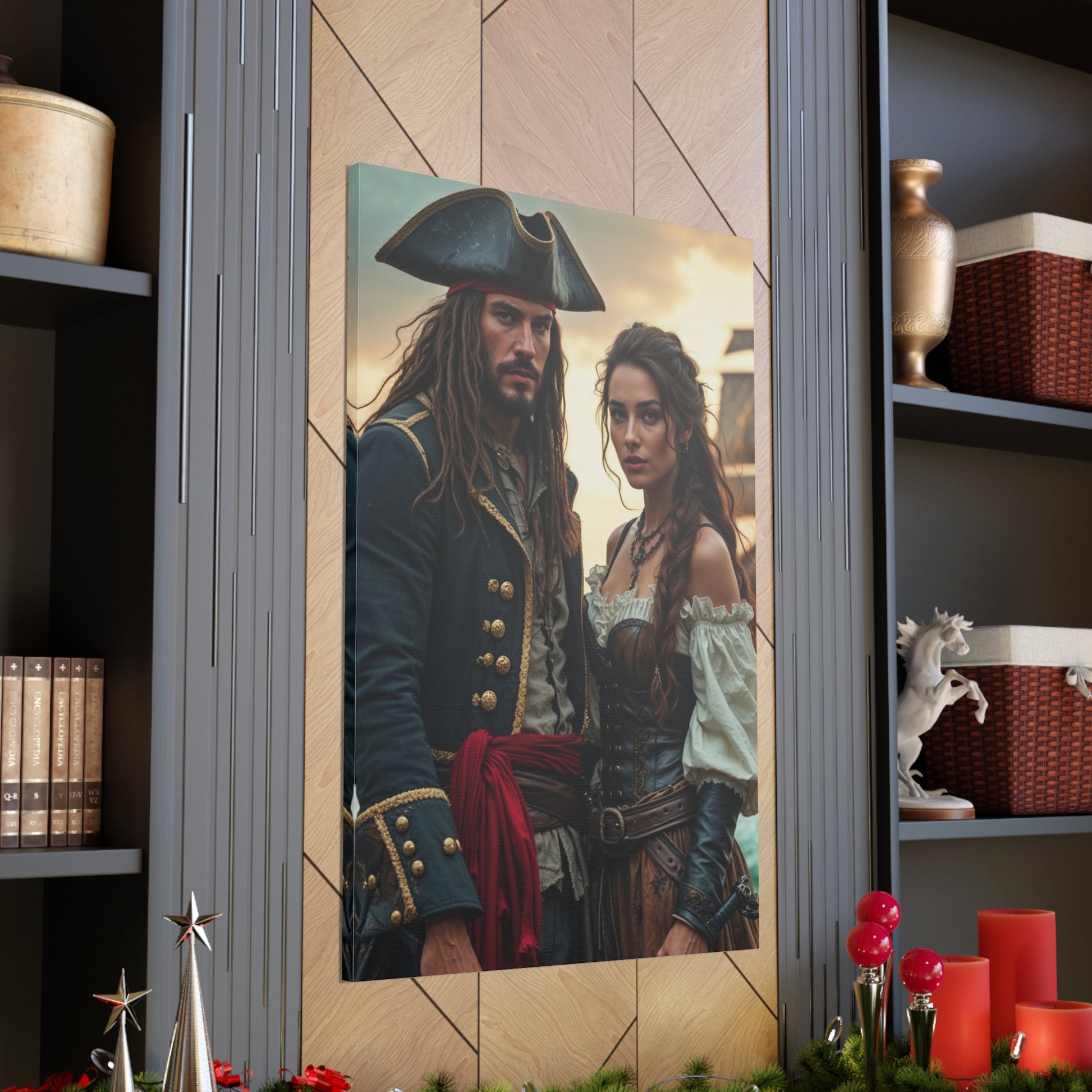 Whether it’s for a couple’s anniversary gift, a fun wedding photo remake, or just because you love pirate legends — this portrait brings swashbuckling charm and timeless style to your walls.