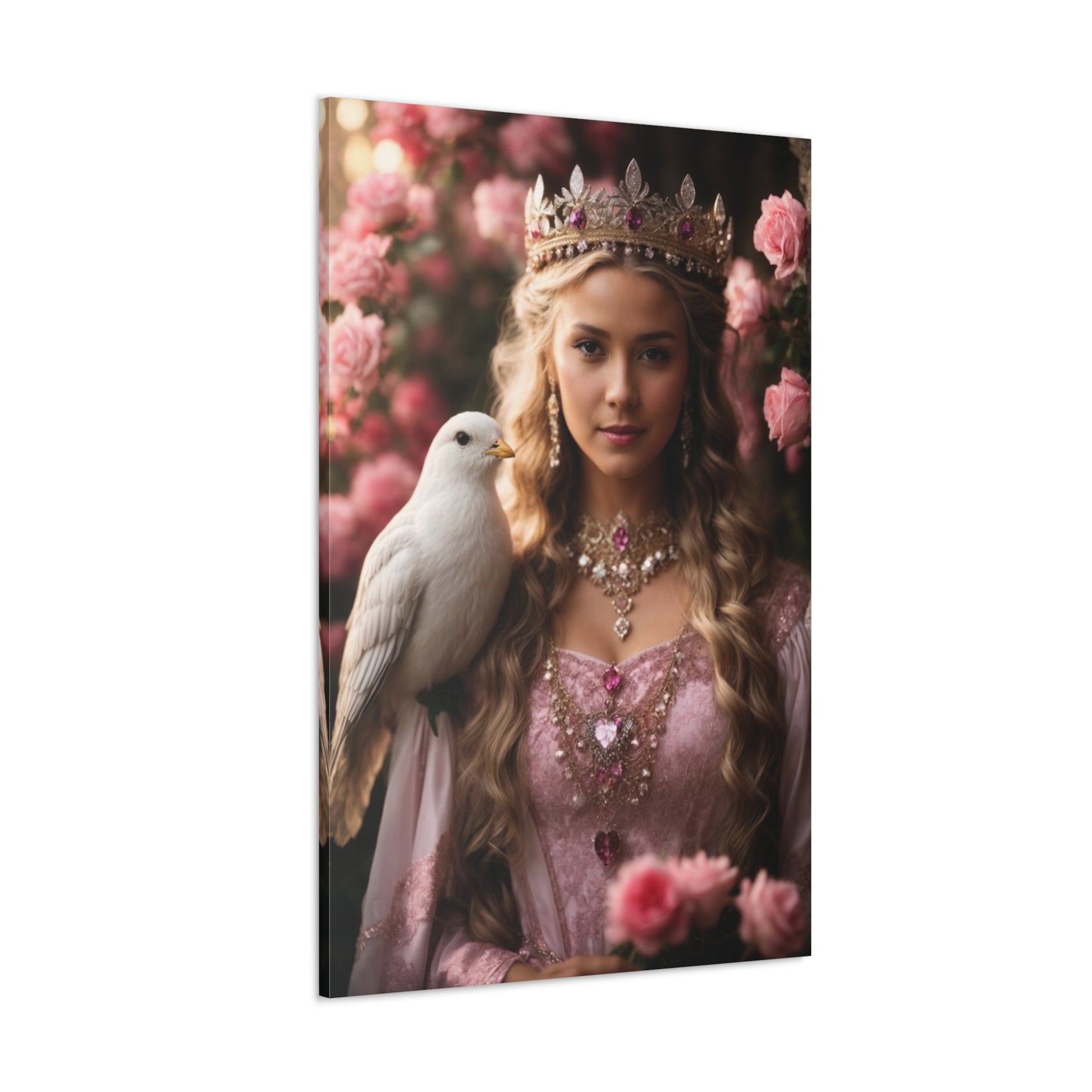 Step into a magical fairy tale with a stunning custom princess portrait that brings your royal dreams to life. Designed with elegant pink tones, delicate floral elements, and regal jewelry, this masterpiece transforms you into a noble princess.