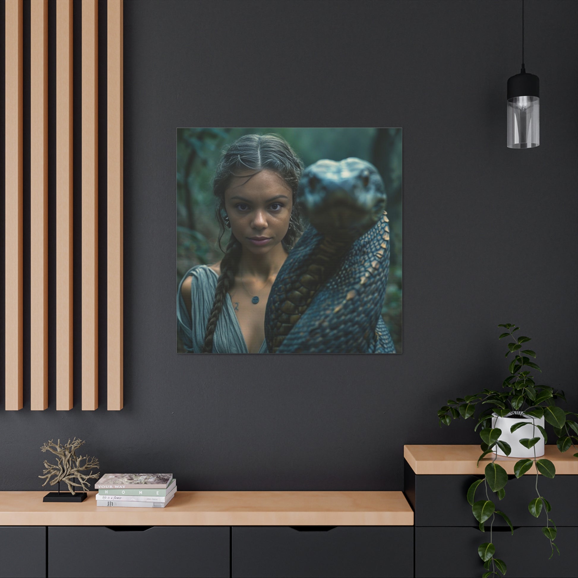 Step into a world of magic and legend with this stunningly crafted custom portrait, transforming you into the Enchantress of the Serpents. Command the presence of mystical creatures and embrace the beauty of the untamed jungle with this fantasy-inspired artwork.